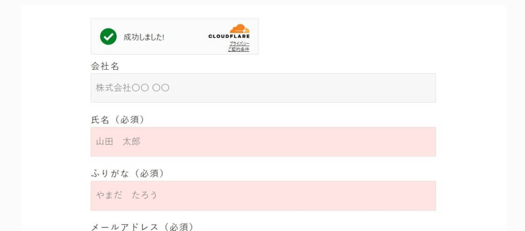 フォームページを開くと、Turnstileの認証ボックスが自動的に表示されます。